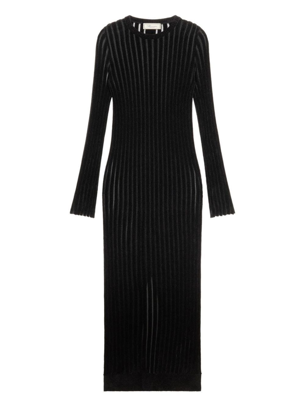 MID-LENGTH KNITTED DRESS WITH SEE-THROUGH STRIPES