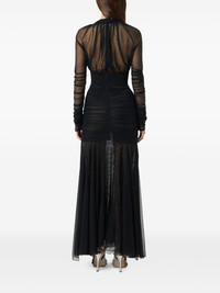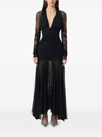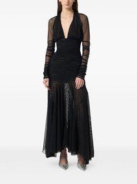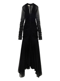 ruched tulle dress Highlights - Black - Plunging v-neck - Long sheer sleeves - Gathered detailing - Rear zip fastening - Layered skirt Imported Composition Polyamide 90%, Elastane 10%
