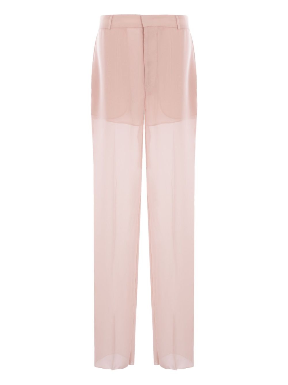 semi-sheer trousers Highlights - Blush pink - High-rise waist - Two front pockets - Concealed zip fastening - Back pocket - Tailored design Made in Italy Composition Outer: Polyester 100% Lining: Polyester 100%