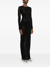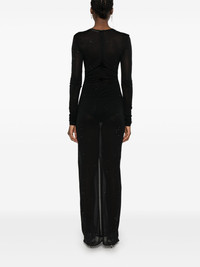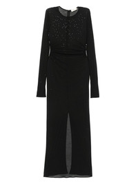 sheer maxi dress Highlights - Black - Concealed rear zip fastening - Crystal embellishment - Crew neck - Long sleeves - Ruched detailing Made in Italy Composition glass 100%, Viscose 100% SIZE & FIT Model measurements Height 5 ft 10 in(1.78 m) Bust/Chest 31.49 in(80 cm) Hips 37 in(94 cm) Waist 23.62 in(60 cm) FittingInformation Designed for a slim fit that sits just away from the body offering a close yet comfortable fit Made from a lightweight non-stretch fabric, this piece offers minimal elasticity when worn