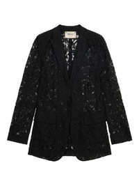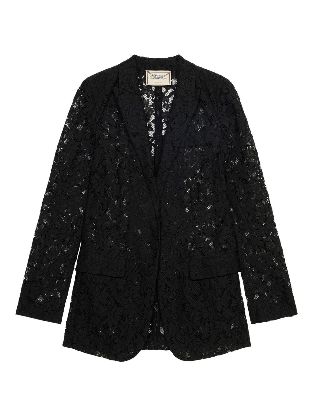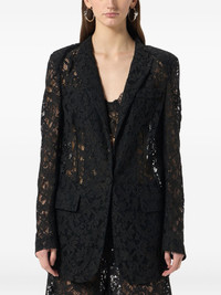 single-breasted floral-lace blazer Highlights - Black - Floral lace design - Single-button fastening - Notch lapels - Front pockets Imported Composition Polyester 67%, Cotton 33% Washing instructions Dry Clean Only
