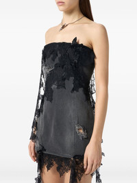 strapless lace-trimmed denim dress Highlights - Charcoal grey - Floral lace embellishments - Rear zip fastening - Asymmetric hemline Imported Composition Cotton 100% Washing instructions Read Manufacturer Guidelines