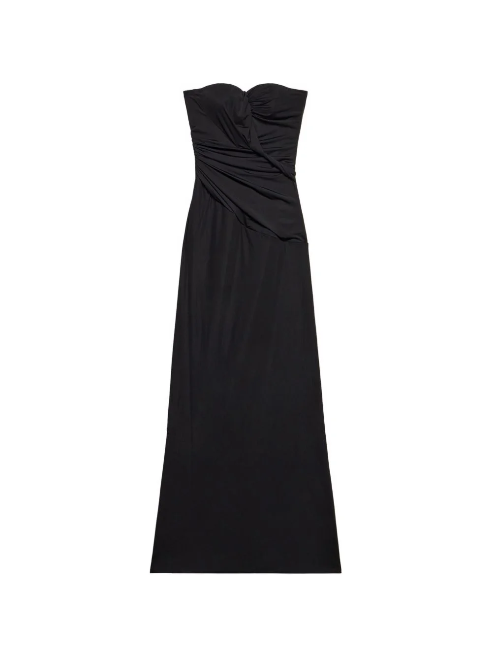 sweetheart-neck gown Highlights - Black - Ruched detailing - Sweetheart neck - Strapless design - A-line silhouette - Long-length Made in Italy Composition Polyamide 75%, Elastane 25% Washing instructions Read Manufacturer Guidelines