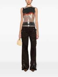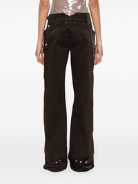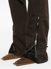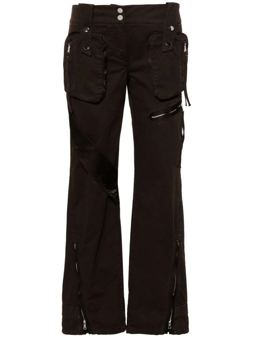 twill cotton trousers Highlights - Chocolate brown - Cotton - Twill weave - Panelled design - Logo-engraved silver-tone hardware - Embroidered logo to the rear - Detachable belt loops - Low-rise - Straight leg - Two front patch pockets - Front zip-fastening pocket - Zip fly fastening - Front button fastening - Unlined Imported Composition Cotton 100%, Viscose 100% SIZE & FIT Model measurements Height 5 ft 9 in(1.76 m) Bust/Chest 31.88 in(81 cm) Hips 35.43 in(90 cm) Waist 24.8 in(63 cm) FittingInformation Designed for a straight-leg fit, these trousers allow for a close fit at the waist and an unrestricted, comfortable fit over the leg The zipped hems allow you to adjust the fit throughout the calves and ankles Made from a midweight non-stretch fabric This piece fits true to size – take your usual size