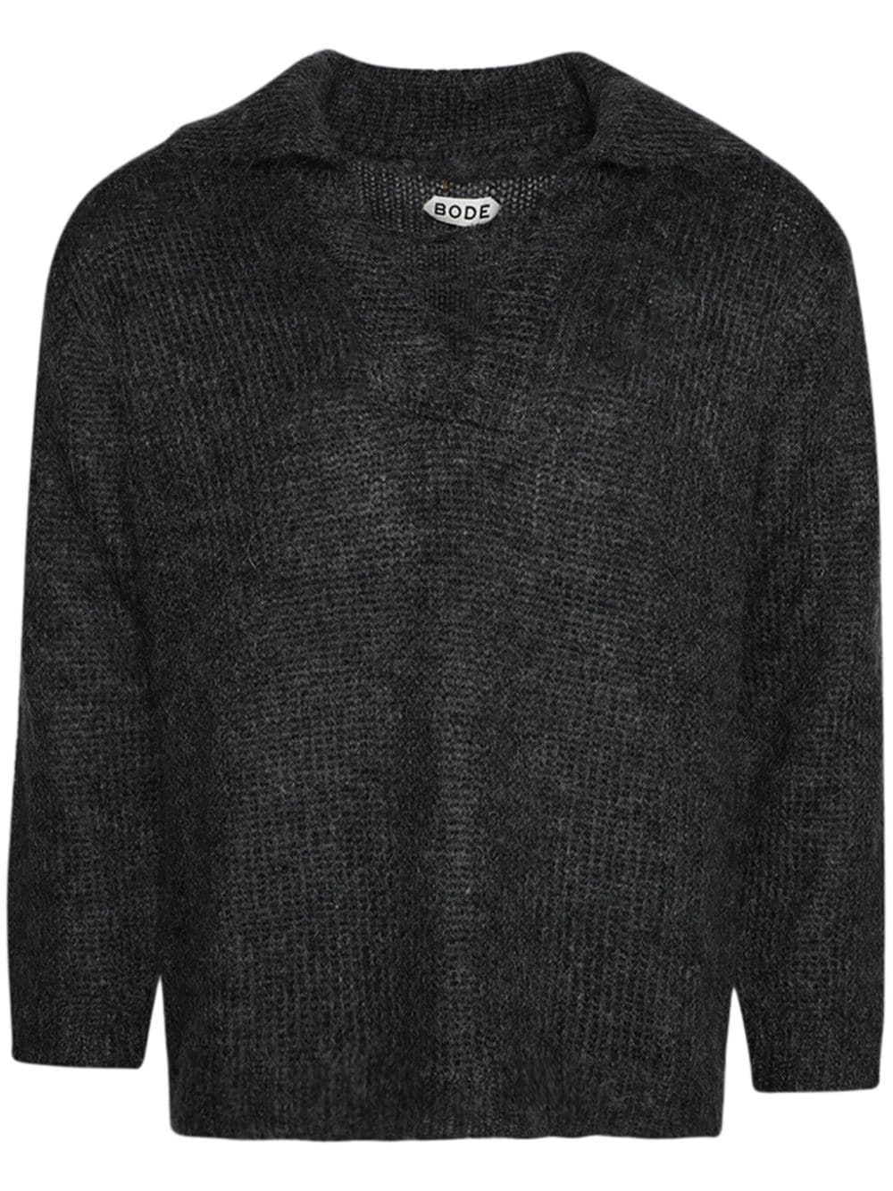 Alpine lace-up jumper Highlights - Dark grey - Mohair blend - Brushed effect - Spread collar - Front lace-up fastening - Long sleeves - Ribbed cuffs and hem Made in Italy Composition Mohair 35%, Alpaca Wool 35%, Polyamide 30%