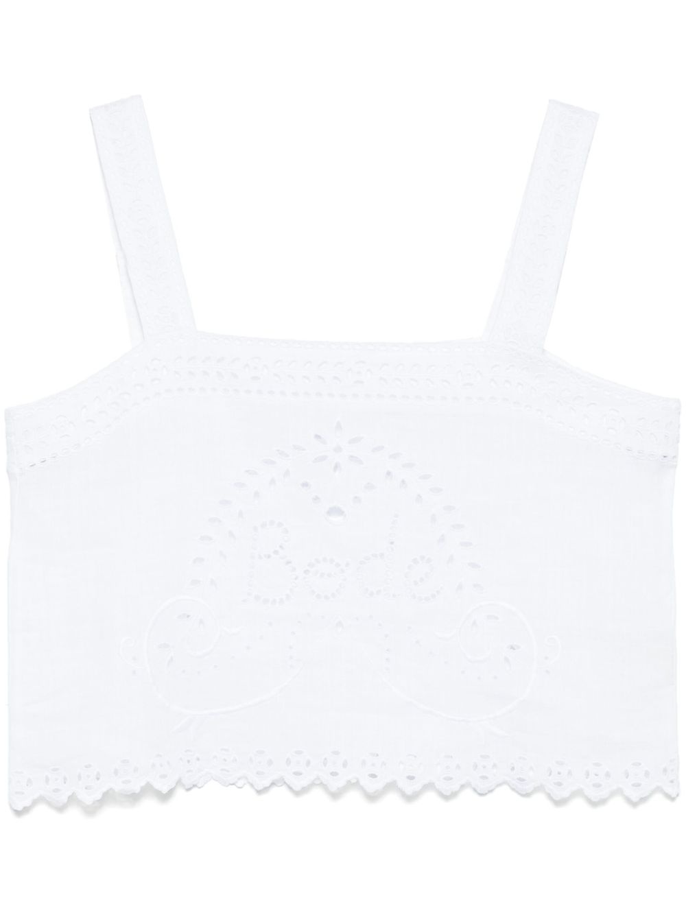 Belvoirt tank top Highlights - White - Square neck - Sleeveless - Broderie anglaise - Scallop edge Imported Composition Linen/Flax 100% SIZE & FIT Model measurements Height 5 ft 11 in(1.8 m) Bust/Chest 31.49 in(80 cm) Hips 36.61 in(93 cm) Waist 24.4 in(62 cm) FittingInformation Designed for a relaxed fit, this piece allows for comfort and movement when worn Made from a lightweight non-stretch fabric