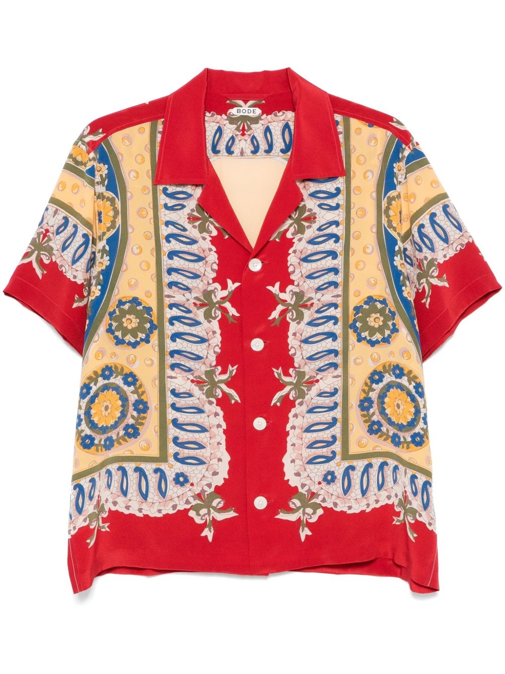 Bricoloage shirt Highlights - Clay red - Front button fastening - All-over graphic print - Short sleeves Imported Composition Silk 100% SIZE & FIT Model measurements Height 6 ft 1 in(1.86 m) Bust/Chest 37.4 in(95 cm) Hips 36.22 in(92 cm) Waist 29.52 in(75 cm) FittingInformation Designed to be unstructured, offering a loose fit throughout Made from a lightweight non-stretch fabric