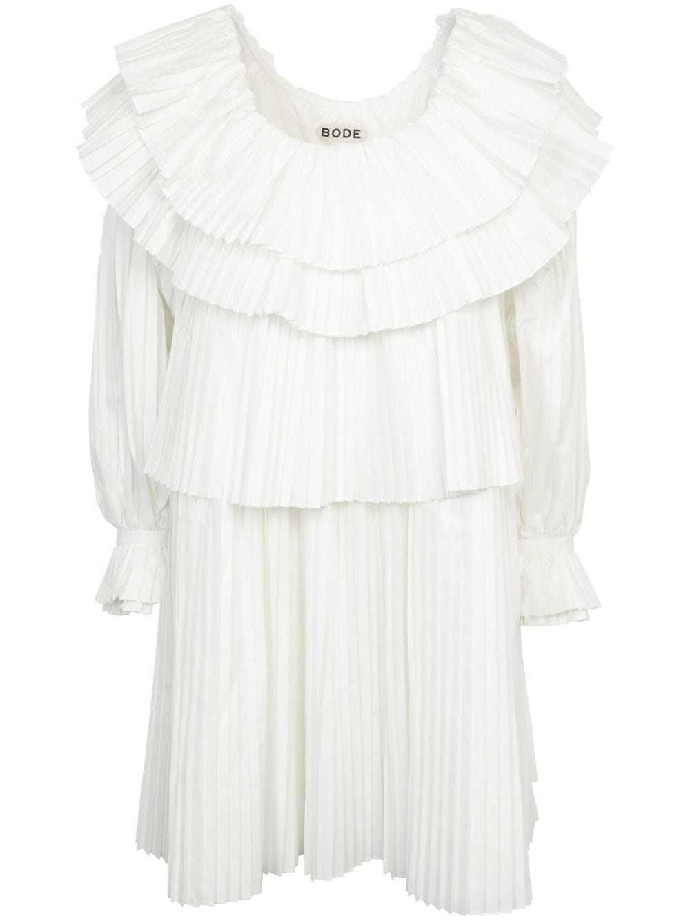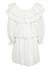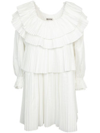 Brunch dress Highlights - White - Wide ruffle collar - Crew neck - Tiered design - Knife-pleat design - Long sleeves - Flared cuffs - Straight hem Imported Composition Polyester 100%