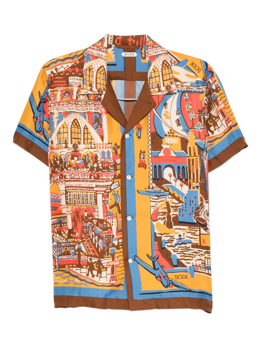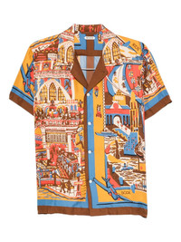 city-scene print silk shirt Highlights - Yellow - City scene print - Revere collar - Short sleeves - Front button fastening Imported Composition Silk 100% SIZE & FIT Model measurements Height 6 ft 1 in(1.85 m) Bust/Chest 38.58 in(98 cm) Hips 37 in(94 cm) Waist 30.31 in(77 cm) Washing instructions Read Manufacturer Guidelines