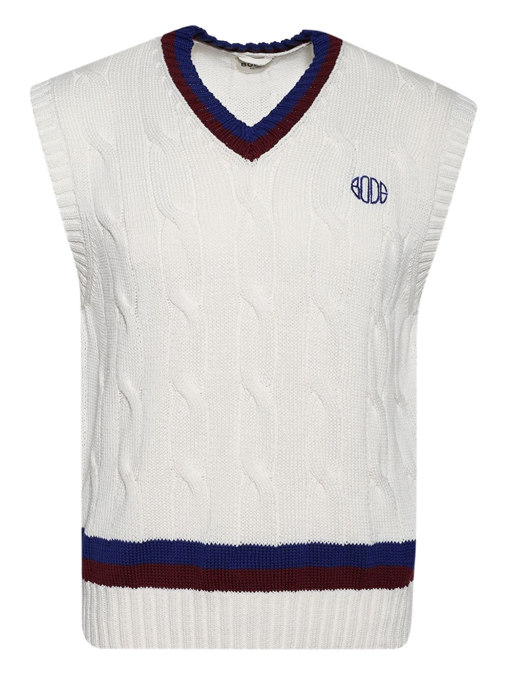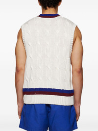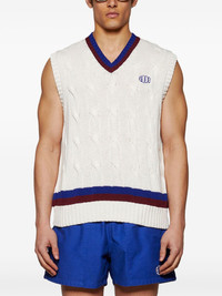 cotton knitted vest Highlights - White - Ribbed v-neck - Sleeveless - Straight hem - Embroidered logo at the chest Imported Composition Cotton 100%