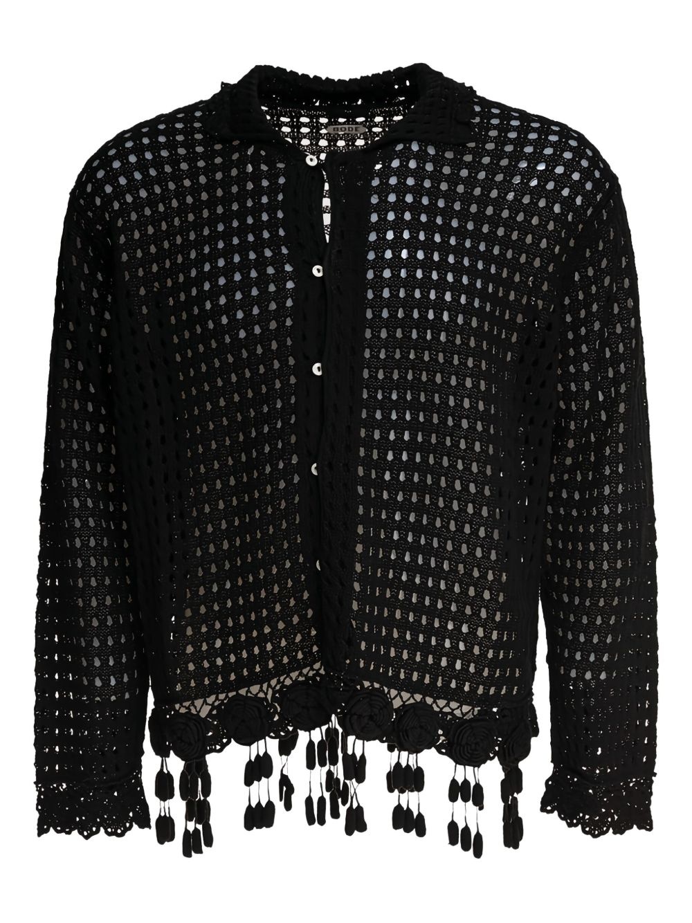 Blossom Tasselled Crocheted Pima Cotton Shirt Black