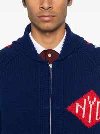 Diamond Corral cardigan Highlights - Royal blue - Front zip fastening - Long raglan sleeves - Two side patch pockets - Patterned intarsia knit Imported Composition Merino 100% SIZE & FIT Model measurements Height 6 ft 2 in(1.89 m) Bust/Chest 35.03 in(89 cm) Hips 38.18 in(97 cm) Waist 29.92 in(76 cm) FittingInformation Designed for a relaxed fit, this piece allows for comfort and movement when worn Made with a midweight knit, this piece offers some stretch