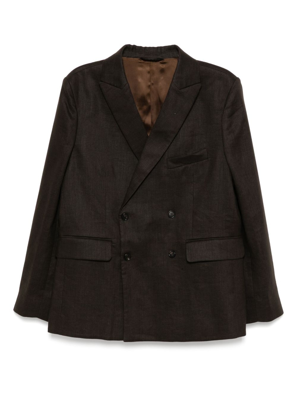 double-breasted blazer Highlights - Chocolate brown - Double-breasted button fastening - Chest welt pocket - Two front flap pockets - Buttoned cuffs Imported Composition Lining: Viscose 100% Outer: Linen/Flax 100% Washing instructions Dry Clean Only