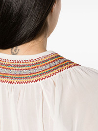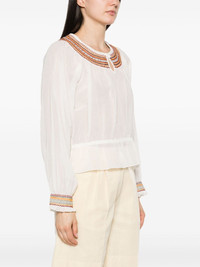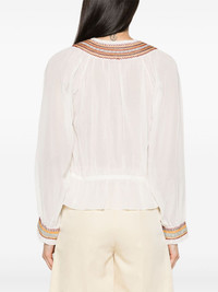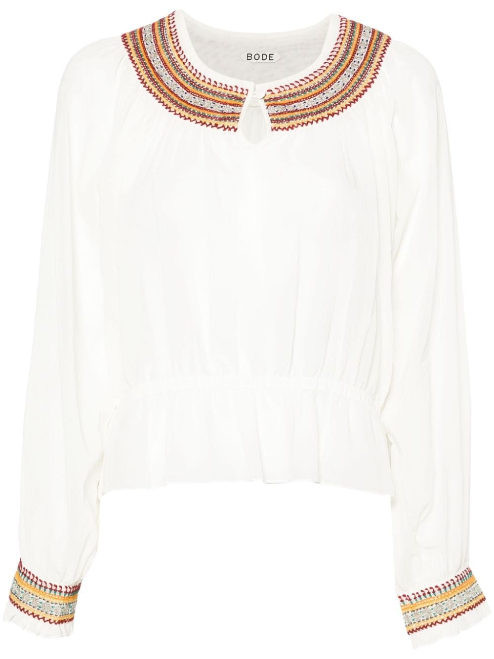 embroidered cotton blouse Highlights - White/multicolour - Cotton - Georgette crepe - Embroidered design - Wide neck - Keyhole neck - Long puff sleeves - Side press-stud fastening - Peplum hem Imported Composition Cotton 100% SIZE & FIT Model measurements Height 5 ft 11 in(1.8 m) Bust/Chest 33.07 in(84 cm) Hips 37.4 in(95 cm) Waist 25.19 in(64 cm) FittingInformation Designed for a relaxed fit, this piece allows for comfort and movement when worn The elasticated waist allows for a comfortable fit Made from a midweight non-stretch fabric This piece fits true to size – take your usual size