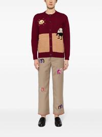 Horseshoe straight-leg trousers A novelty vest from the late 20th century inspires BODE's Horseshoe trousers. Cut with a straight leg, they've a beige design enhanced with colourful accents and red cross-stitching. Highlights - Brown - Wool/cotton - Embroidered motif - Contrast stitching - Mid-rise - Front button fastening - Adjustable side straps - Straight leg Imported Composition Body: Wool 100% Lining: Cotton 100% SIZE & FIT Model measurements Height 6 ft 2 in(1.87 m) Bust/Chest 34.25 in(87 cm) Hips 36.22 in(92 cm) Waist 29.52 in(75 cm) FittingInformation Designed for a tapered leg, offering a loose unrestricted fit over the leg with a closer fit towards the ankle The adjustable tabs allow for fitted preferences Made from a midweight non-stretch fabric This piece fits true to size – take your usual size