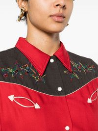 Jumper Western embroidered-star shirt Highlights - Red/multicolour - Twill weave - Colour-block design - Embroidered motif - Crystal embellishment - Two side inset pockets - Western style - Pointed flat collar - Long sleeves - Press-stud fastening cuffs - Straight hem - Front press-stud and zip fastening Imported Composition Viscose 100% SIZE & FIT Model measurements Height 5 ft 9 in(1.76 m) Bust/Chest 31.88 in(81 cm) Hips 35.43 in(90 cm) Waist 24.8 in(63 cm) FittingInformation Designed to be unstructured, offering a loose fit throughout Made from a midweight non-stretch fabric This piece fits true to size – take your usual size Washing instructions Dry Clean Only
