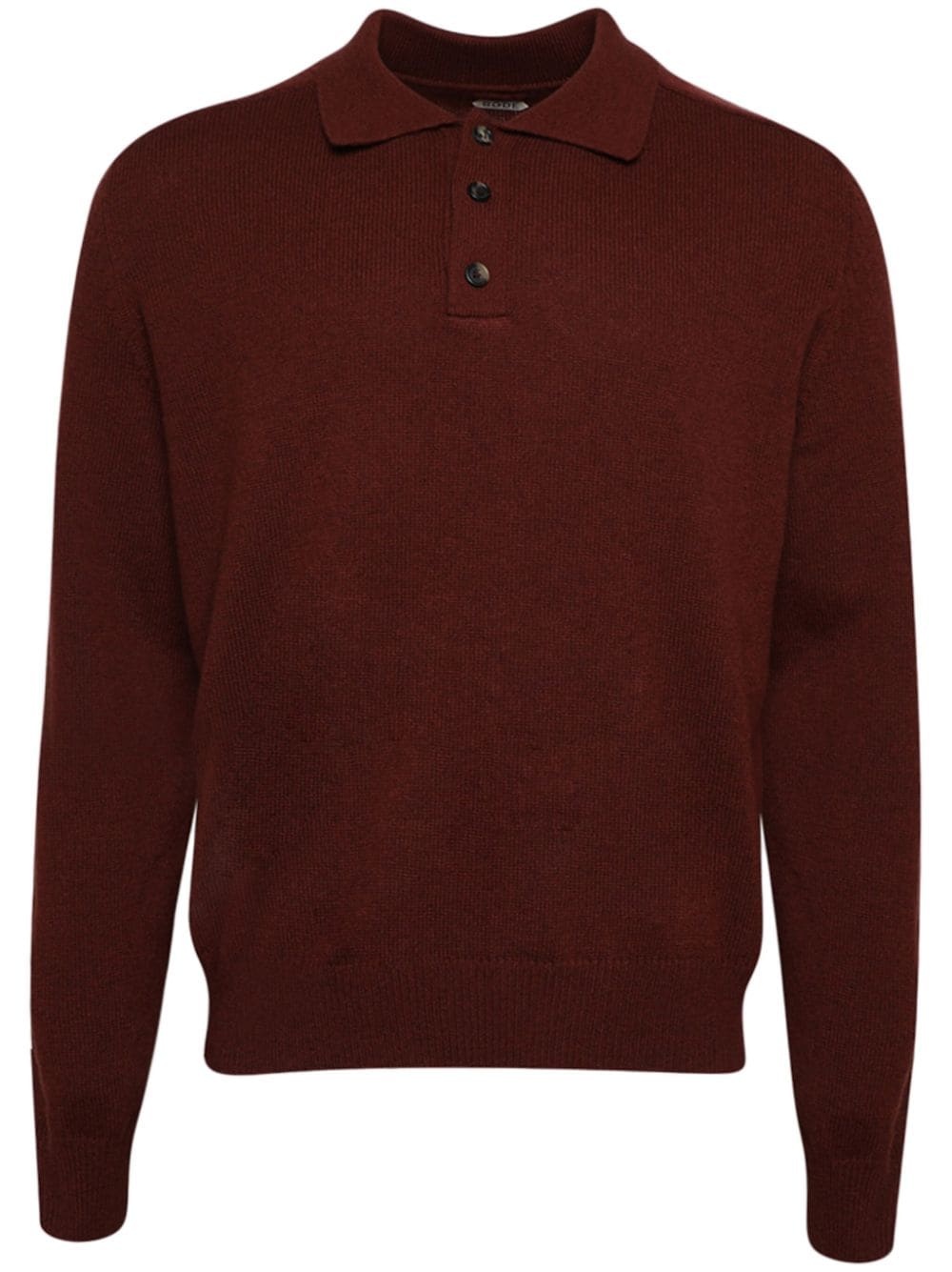 knitted cashmere polo shirt Highlights - Auburn brown - Cashmere - Front button placket - Polo collar - Ribbed cuffs and hem Made in Italy Composition Cashmere 100%