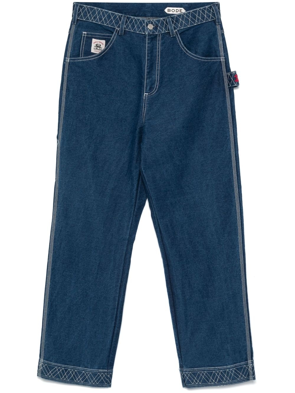 Knolly Brook embroidered jeans Highlights - Indigo blue - Cotton - Denim - Front button and zip fastening - Contrast decorative stitching - Belt loops - Classic five pockets - Logo patch to the side - Hammer tool strap - Embroidered logo to the side - Straight leg Imported Composition Cotton 100% SIZE & FIT Model measurements Height 6 ft 2 in(1.88 m) Bust/Chest 36.61 in(93 cm) Hips 35.82 in(91 cm) Waist 27.95 in(71 cm) Measurement FRONT RISE 12.2 in(31 cm) INSIDE LEG 29.13 in(74 cm) HIPS 39.37 in(100 cm) FittingInformation Designed with a straight leg, these jeans allow for an unrestricted and comfortable fit over the leg Sturdy and hard-wearing, this denim piece offers no stretch