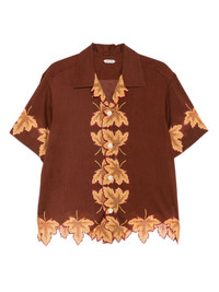 leaf-print scalloped shirt Highlights - Brown - Leaf print - Short sleeves - Revere collar - Scalloped hem - Embroidered details Imported Composition Fabric 100% SIZE & FIT Model measurements Height 6 ft 0 in(1.84 m) Bust/Chest 35.82 in(91 cm) Hips 37 in(94 cm) Waist 28.34 in(72 cm) Washing instructions Read Manufacturer Guidelines