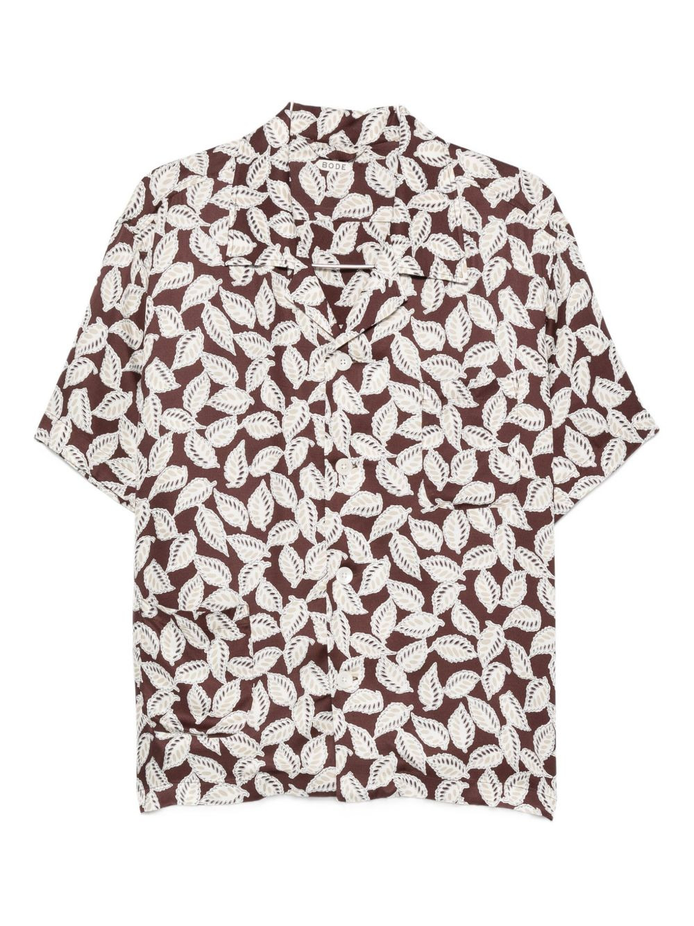 leaf-print shirt Highlights - Brown - Leaf print - Short sleeves - Camp collar - Front button fastening - Chest pocket Imported Composition Viscose 100% SIZE & FIT Model measurements Height 6 ft 1 in(1.85 m) Bust/Chest 35.82 in(91 cm) Hips 37.79 in(96 cm) Waist 29.13 in(74 cm) Washing instructions Read Manufacturer Guidelines