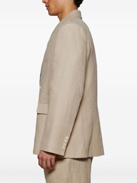 linen double-breasted blazer Highlights - Light beige - Double-breasted button fastening - Chest welt pocket - Two side flap pockets - Buttoned cuffs Imported Composition Linen/Flax 100%