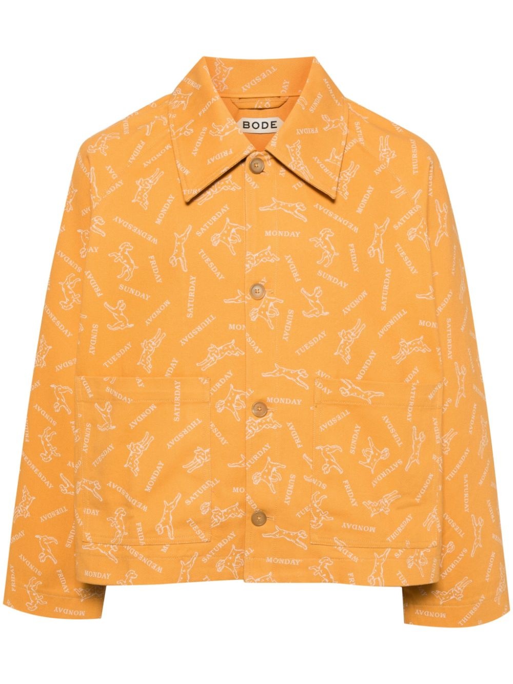 Pooch cotton shirt jacket Highlights - Sunflower yellow/white - Cotton - Text and illustration-style prints - Spread collar - Front button fastening - Long sleeves - Two side patch pockets - Straight hem Imported Composition Body: Cotton 100%