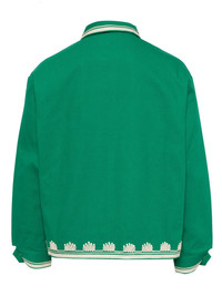 Ripple-applique zip-up shirt jacket Highlights - Green/ecru - Cotton - Applique detailing - Striped edge - Classic collar - Front zip fastening - Long sleeves - Buttoned cuffs - Two diagonal pockets to the sides - Striped lining - Straight hem Imported Composition Outer: Cotton 100% Lining: Cotton 100% SIZE & FIT Measurement CHEST 51.18 in(130 cm) SLEEVE LENGTH 23.22 in(59 cm) HIPS 49.6 in(126 cm) LENGTH 26.37 in(67 cm) WAIST 49.6 in(126 cm)