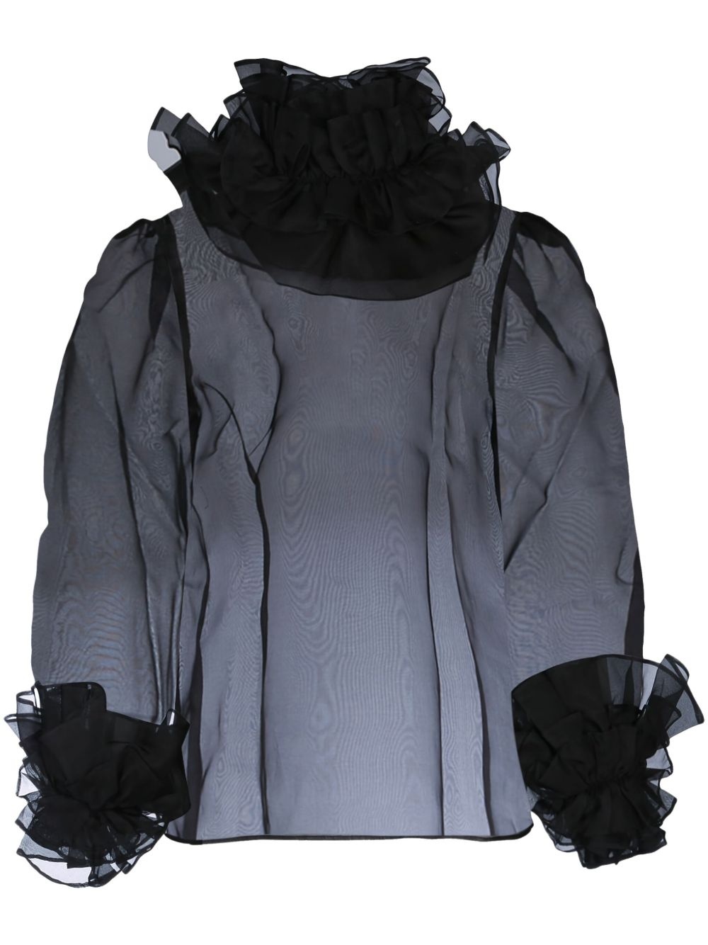 ruffled blouse Highlights - Black - Rear button fastening - High neck - Long sleeves Imported Composition Fabric 100%