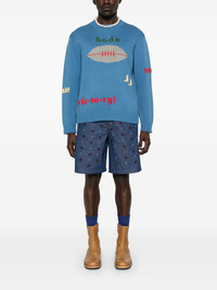 Spirit sweater Highlights - Cornflower blue - Ribbed cuffs and hem - Crew neck - Long sleeves - Intarsia-knit logo Imported Composition Cotton 55%, Merino 45% SIZE & FIT Model measurements Height 6 ft 0 in(1.84 m) Bust/Chest 37.79 in(96 cm) Hips 37 in(94 cm) Waist 31.49 in(80 cm) FittingInformation Designed for a regular fit, offering a comfortable loose fit throughout the body Made with a midweight knit, this piece offers some stretch