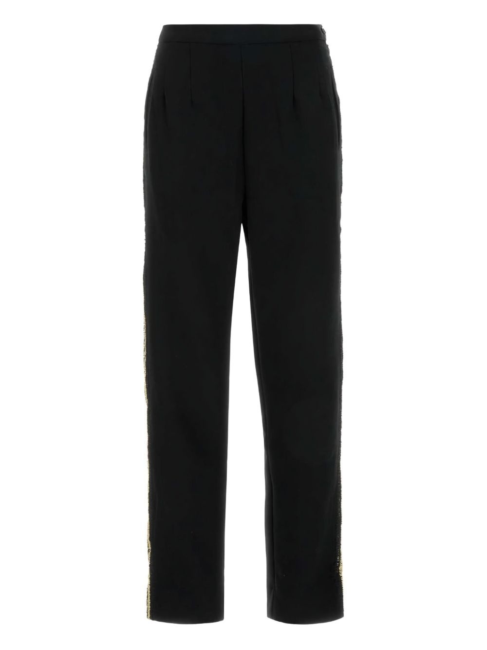 stripe-detail tailored trousers Highlights - Black - Pleated front - Gold-tone side stripes - Concealed zip fastening - Side slit pockets Imported Composition Polyester 100%