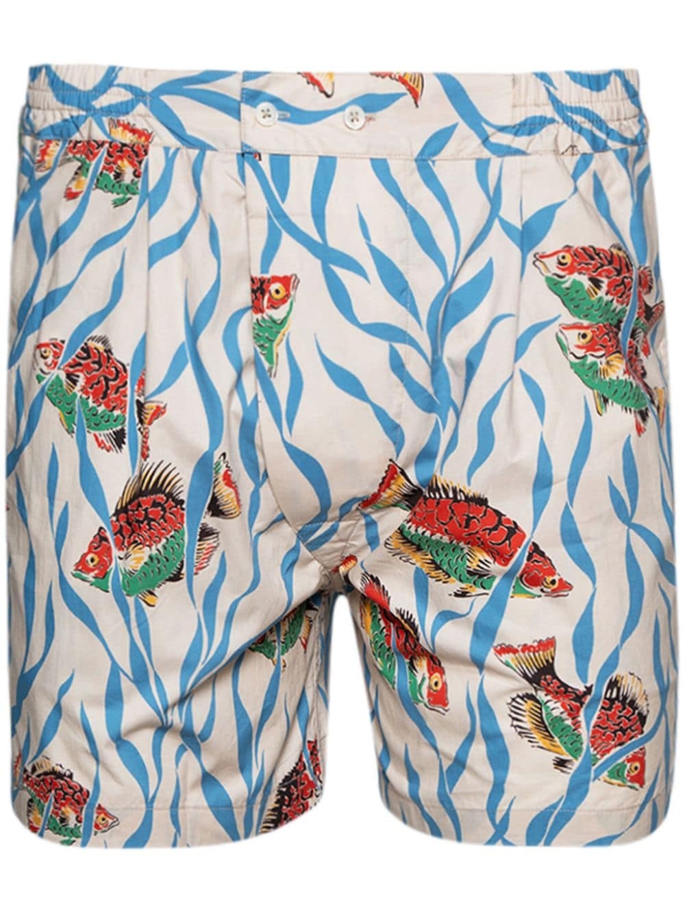 Swimmers shorts Highlights - White/multicolour - Cotton - All-over graphic print - Elasticated waistband - Front button fastening - Straight leg - Two side inset pockets - Thigh-length Imported Composition Cotton 100%