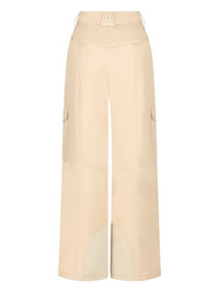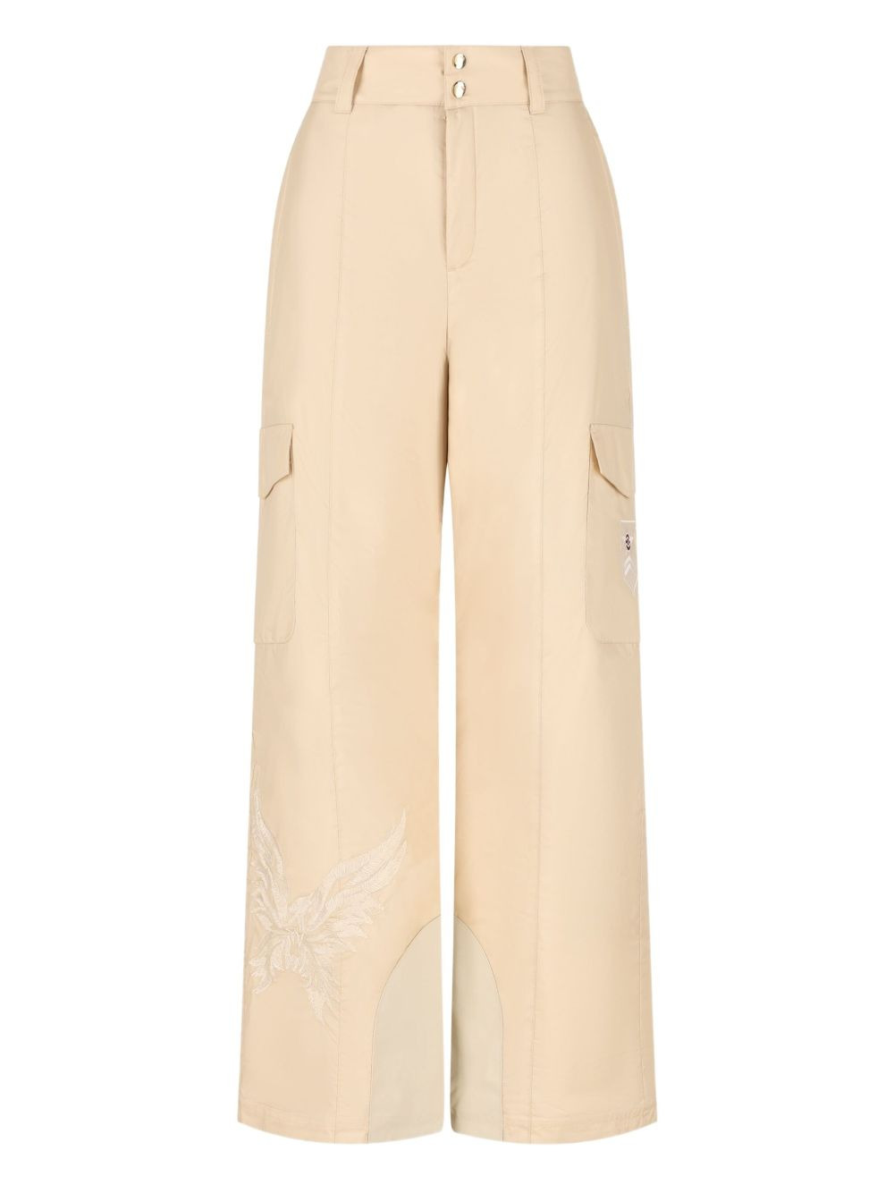 high-waisted flared trousers Highlights - Beige - Front button and zip fastening - Side slit pockets - Belt loops - High-rise - Embroidery design Imported Composition Polyamide 100% Washing instructions Read Manufacturer Guidelines