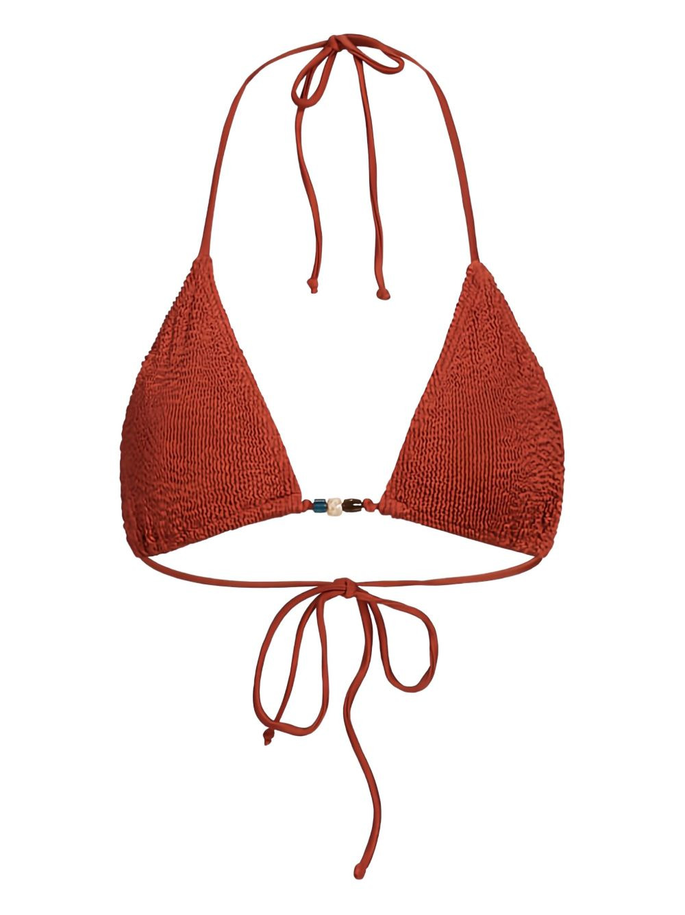 beaded Ingrid bikini top Highlights - Bronze - Triangle top - Tie fastening - Beaded detail - Be mindful to try on swimwear over your own garments. Imported Composition Recycled Nylon 55%, Polyamide 33%, Lycra 12% Washing instructions Machine Wash