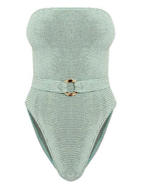 belted textured swimsuit Highlights - Green - Textured - Belt - Ring detail - Strapless - High-cut legs - Be mindful to try on swimwear over your own garments. Imported Composition Recycled Nylon 60%, Polyester 22%, Nylon 7%, Lurex 6%, Lycra 5% Washing instructions Hand Wash