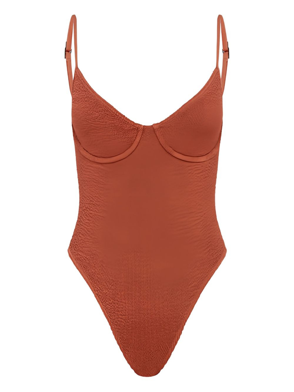 Gracie One Piece swimsuit Highlights - Brown - Textured finish - Adjustable straps - Underwired cups - Low back - Be mindful to try on swimwear over your own garments. Imported Composition Recycled Nylon 88%, Nylon 7%, Lycra 5%