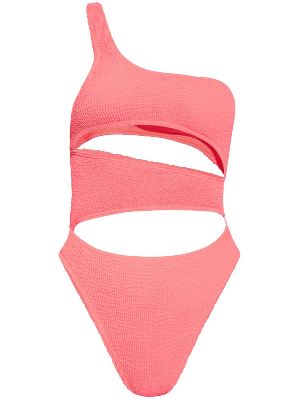 Rico one-shoulder swimsuit Highlights - Pink - Recycled nylon blend - Crinkled finish - Cut-out detailing - One-shoulder - High cut - Be mindful to try on swimwear over your own garments. Imported Composition Recycled Nylon 88%, Nylon 7%, Lycra 5%
