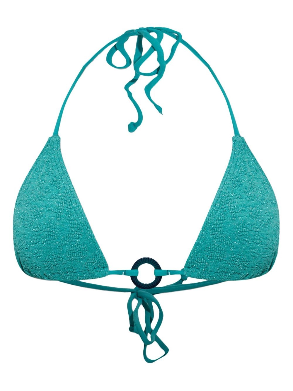 Ring Ingrid bikini top Highlights - Teal blue - Halterneck tie fastening - Rear tie fastening - Ring hardware detailing Imported Composition Outer: Nylon 60%, Polyester 20%, Lycra 12%, Lurex 8%