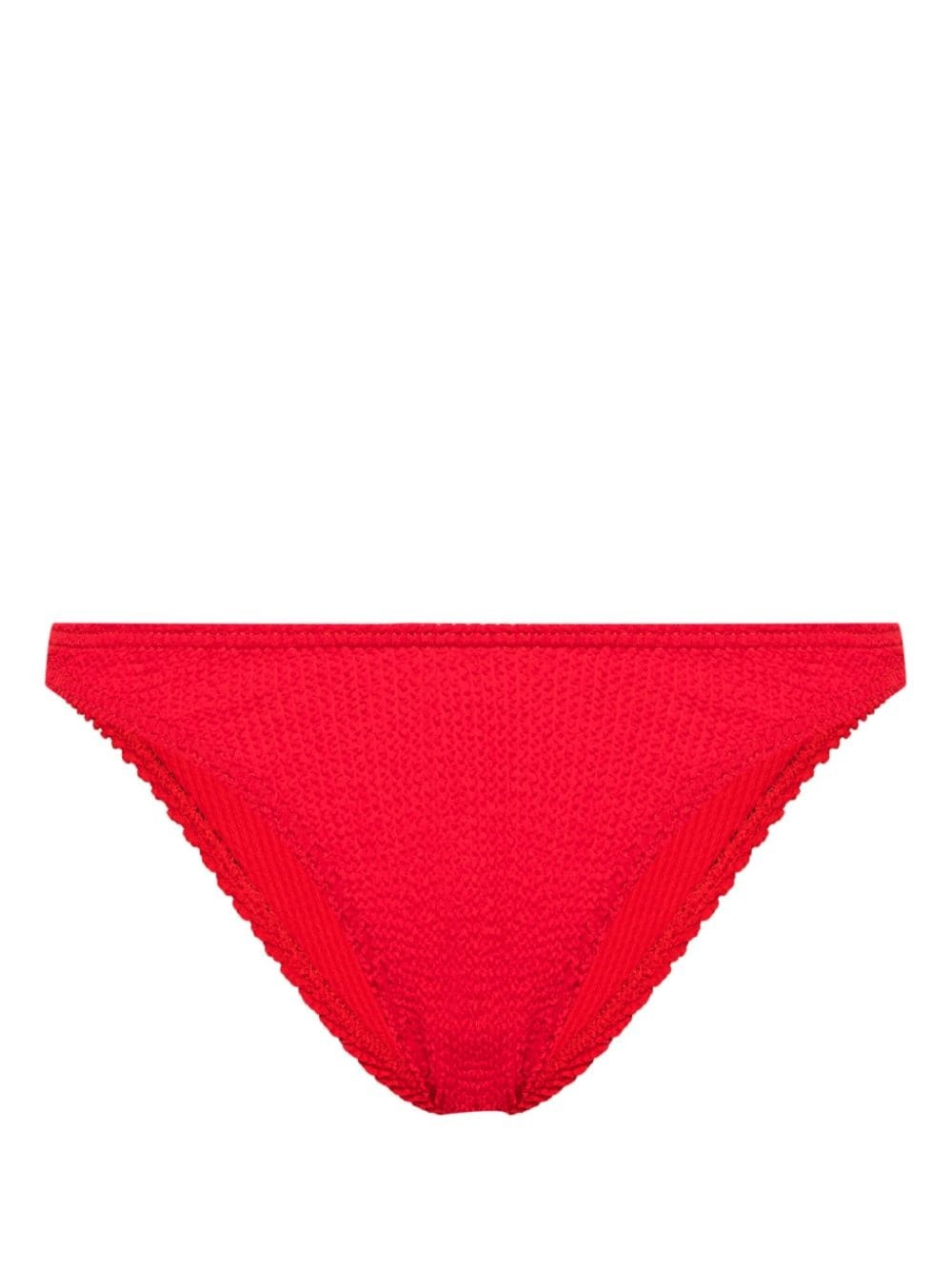 Scene seersucker bikini bottoms Highlights - Bright red - Recycled polyamide blend - Seersucker texture - Crinkled finish - High-waisted - Elasticated band - High cut - Be mindful to try on swimwear over your own garments. Imported Composition Recycled Polyamide 55%, Polyamide 33%, Elastane 12% SIZE & FIT Measurement LENGTH 7.08 in(18 cm) WIDTH 25.19 in(64 cm)