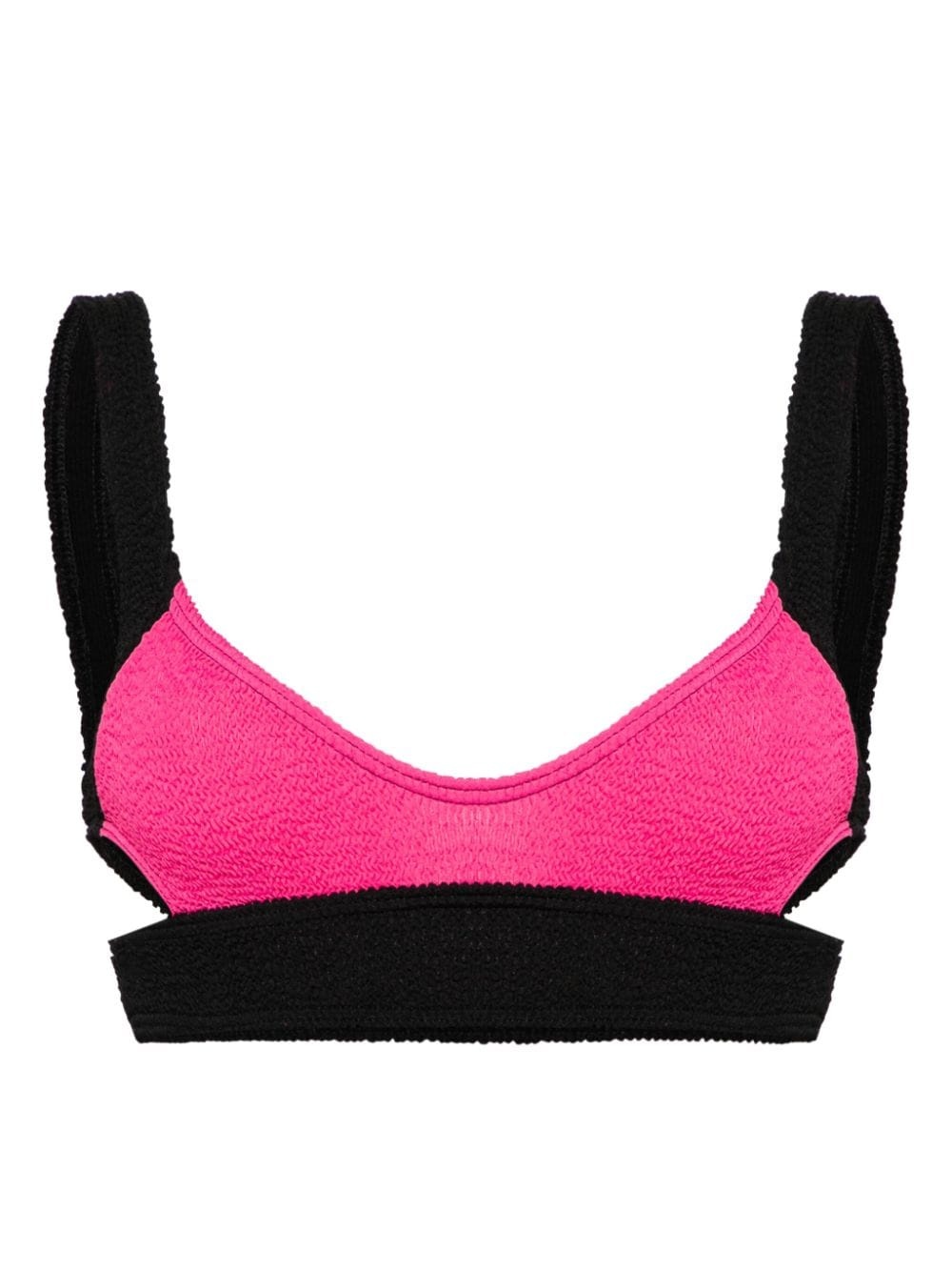 Splice Nino colour-block bikini top Highlights - Black/raspberry pink - Recycled nylon blend - Smocked panel - Colour-block design - Scoop neck - Cut-out detailing - Square open back - Unlined - Be mindful to try on swimwear over your own garments. Imported Composition Recycled Nylon 88%, Nylon 7%, Lycra 5%