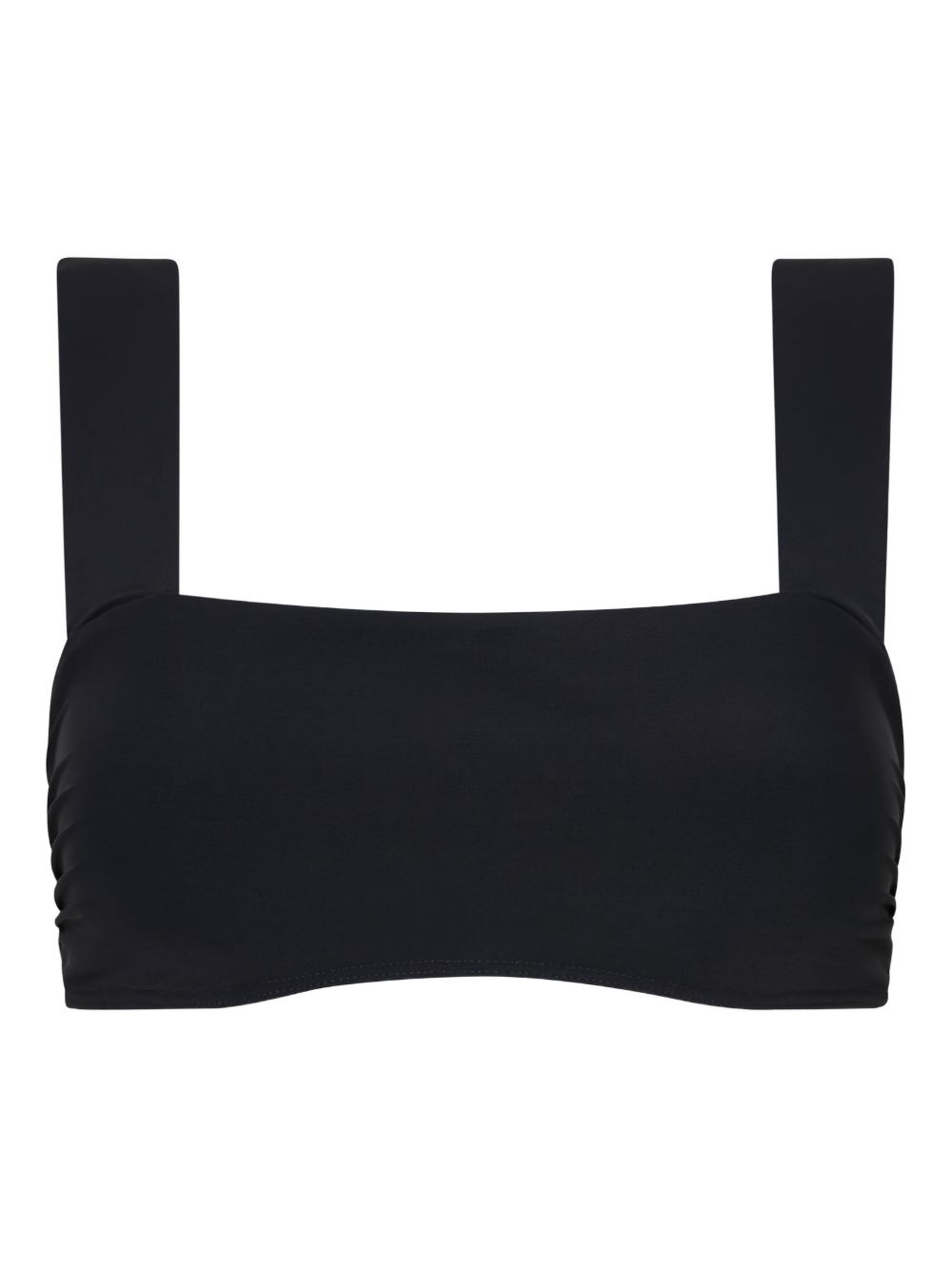 Elle bikini top Highlights - Black - Square neck - Buckle detail - Wide straps - Ruched sides - Sculpt style - Be mindful to try on swimwear over your own garments. Made in Italy Composition Microfibre 59%, Lycra 41%
