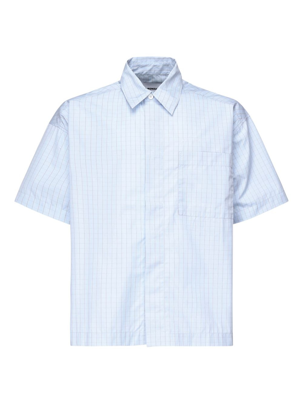 checked short-sleeve shirt Highlights - Light blue - Grid pattern - Short sleeves - Button fastening - Chest pocket - Collared neck Imported Composition Cotton 100% Washing instructions Read Manufacturer Guidelines