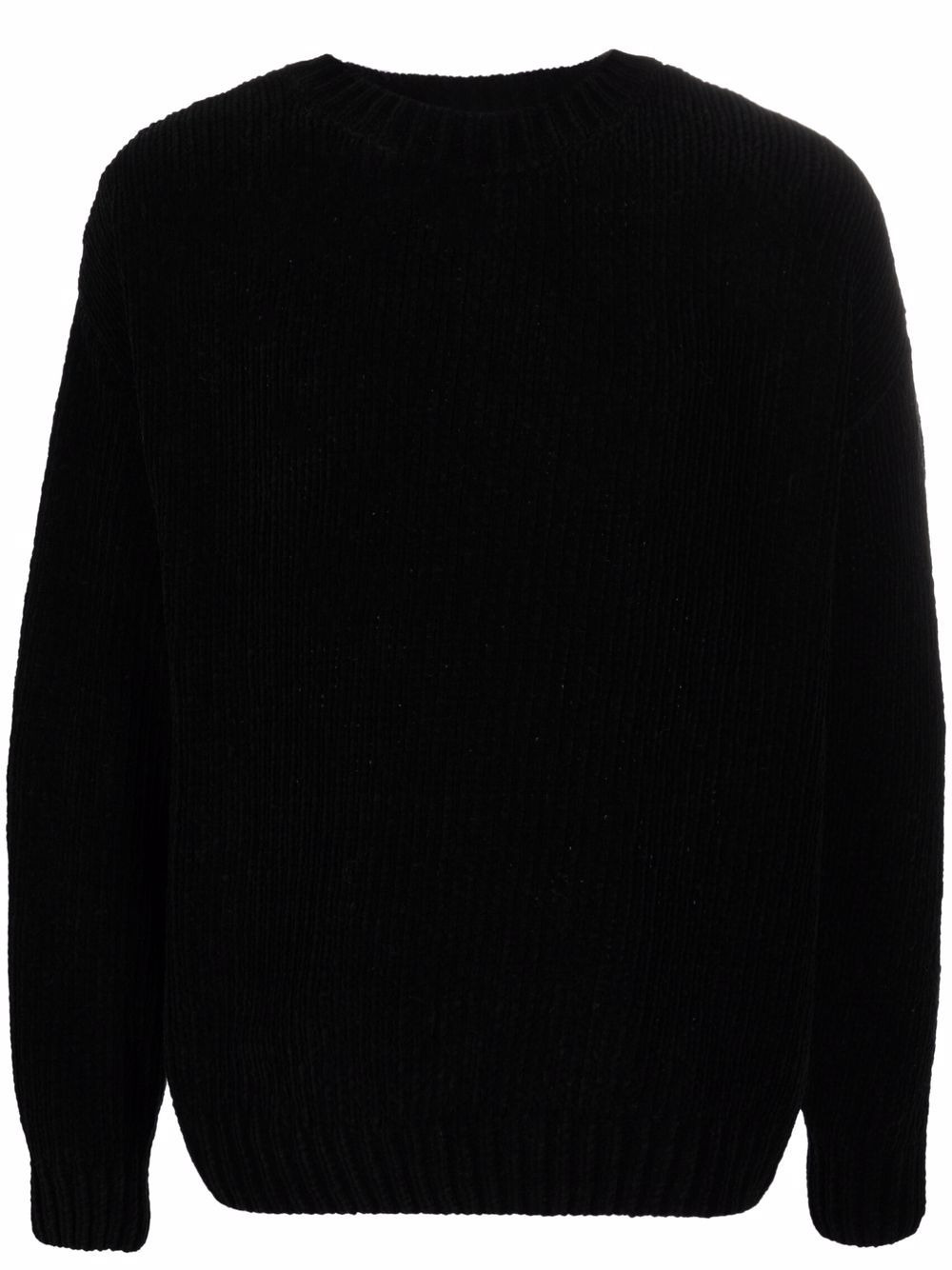 crewneck pullover jumper black cotton textured finish crew neck long sleeves straight hem Made in Italy Composition Cotton 100% SIZE & FIT Model measurements Height 6 ft 1 in(1.86 m) Bust/Chest 35.43 in(90 cm) Hips 35.43 in(90 cm) Waist 29.92 in(76 cm) FittingInformation Designed to be unstructured, offering a loose fit throughout Made with a midweight knit, this piece offers some stretch Washing instructions Machine Wash