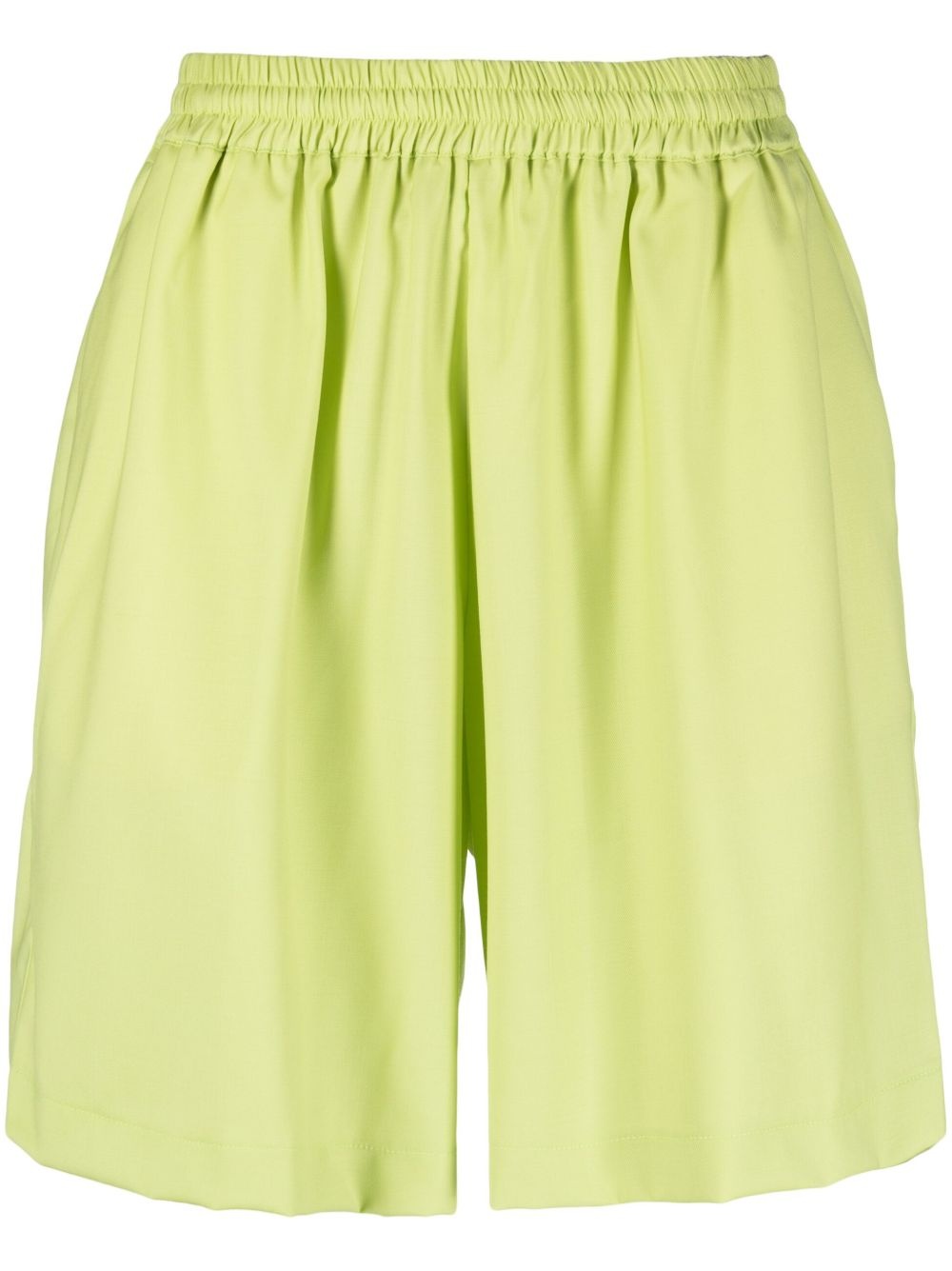 elasticated-waist twill shorts Highlights - Lime green - Virgin wool blend - Elasticated waistband - Two side slash pockets - Rear welt pocket - Knee-length Made in Italy Composition Virgin Wool 98%, Spandex/Elastane 2% SIZE & FIT FittingInformation Designed for relaxed fit, offering a comfortable loose fit over the leg The elasticated waist allows for a comfortable fit Made from a midweight stretch fabric, this piece offers elasticity and flexibility when worn