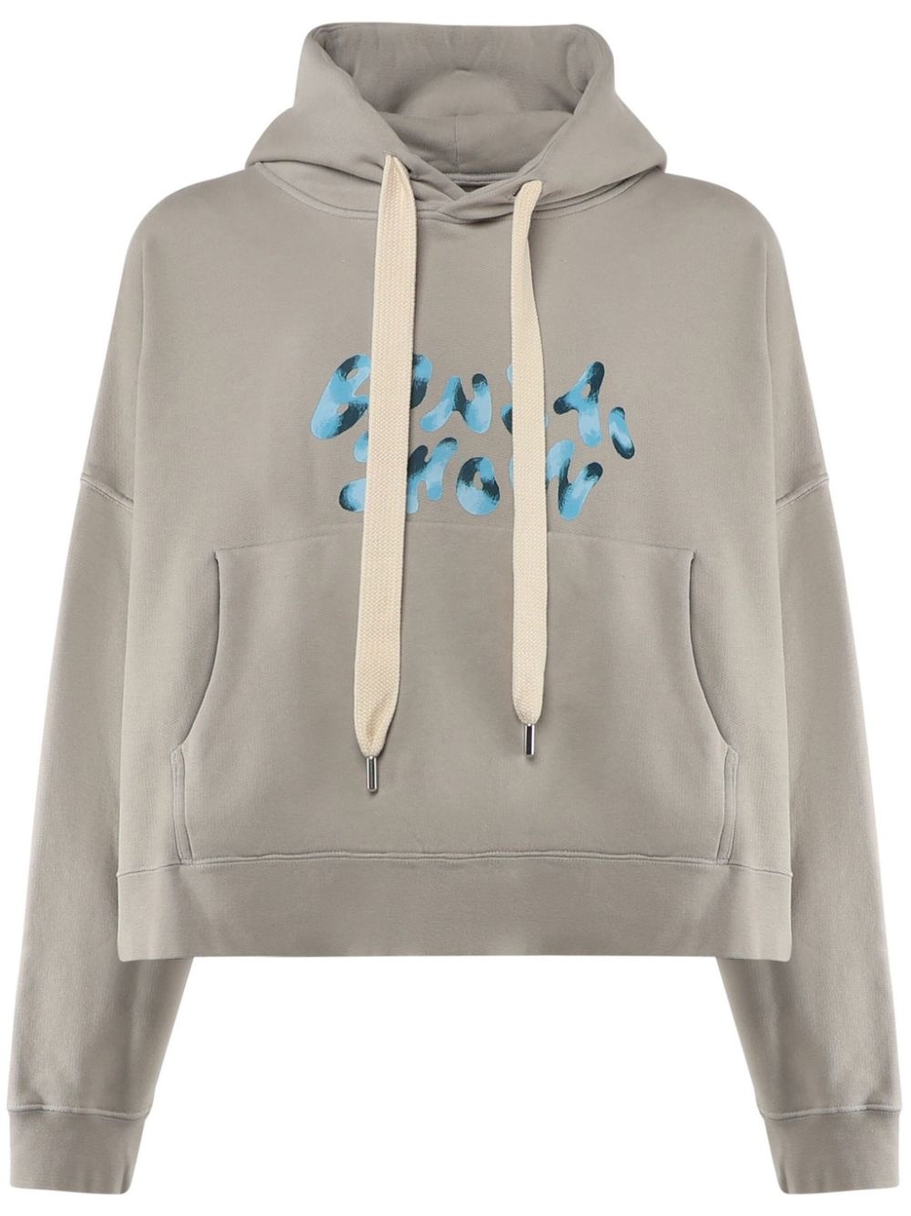 logo-print hoodie Highlights - Light grey - Cotton - Jersey texture - Drawstring hood - Drop shoulder - Long sleeves - Ribbed cuffs and hem - Logo print at the chest - Front pouch pocket Imported Composition Cotton 100%