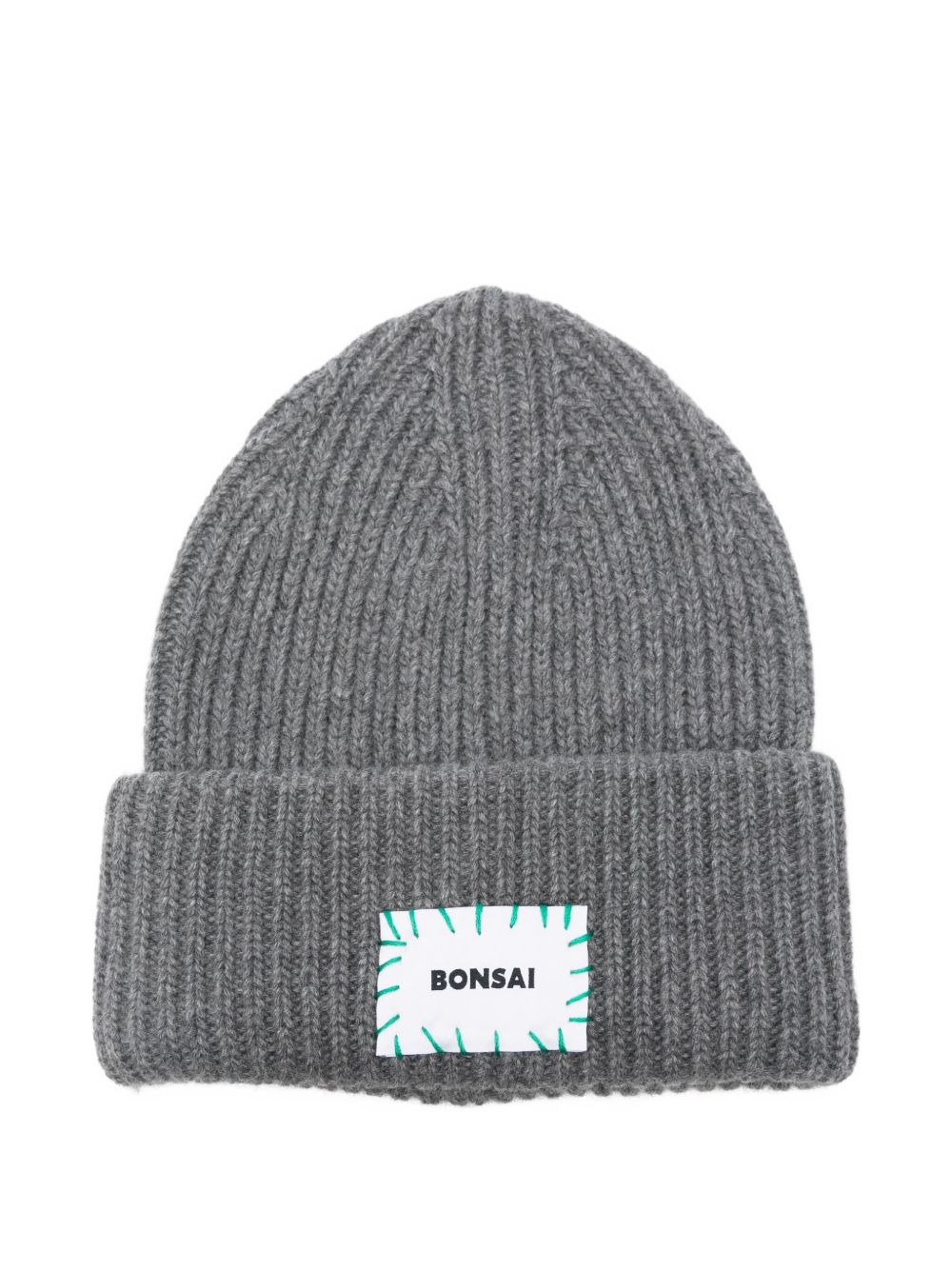 logo ribbed beanie hat Highlights - Grey - Ribbed knit - Logo patch detail Made in Italy Composition Polyamide 35%, Wool 30%, Viscose 30%, Cashmere 5%