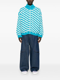 zip-up cardigan Highlights - Azure - Front zip fastening - Checkerboard knit - Two side slit pockets - High neck Made in Italy Composition Wool 50%, Acrylic 50% SIZE & FIT Model measurements Height 6 ft 2 in(1.87 m) Bust/Chest 36.41 in(92.5 cm) Hips 37 in(94 cm) Waist 29.52 in(75 cm) FittingInformation Designed for an oversized fit, offering additional room throughout Made with a midweight knit, this piece offers some stretch