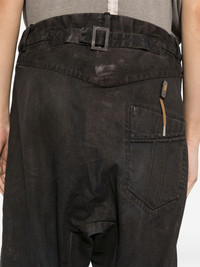 cotton loose-fit trousers Highlights - Black - Cotton blend - Stretch-cotton - Concealed fly and button fastening - Drop crotch - Belt loops - Two side slash pockets - Rear patch pocket - Straight hem Imported Composition Cotton 98%, Polyurethane 2% SIZE & FIT Model measurements Height 6 ft 2 in(1.88 m) Bust/Chest 34.25 in(87 cm) Hips 34.64 in(88 cm) Waist 26.77 in(68 cm) FittingInformation Designed with a dropped crotch, these jeans allow for a loose and relaxed fit throughout the leg Adjust this piece’s waistband to your preference using the drawstring Sturdy and hard-wearing, this denim piece offers no stretch