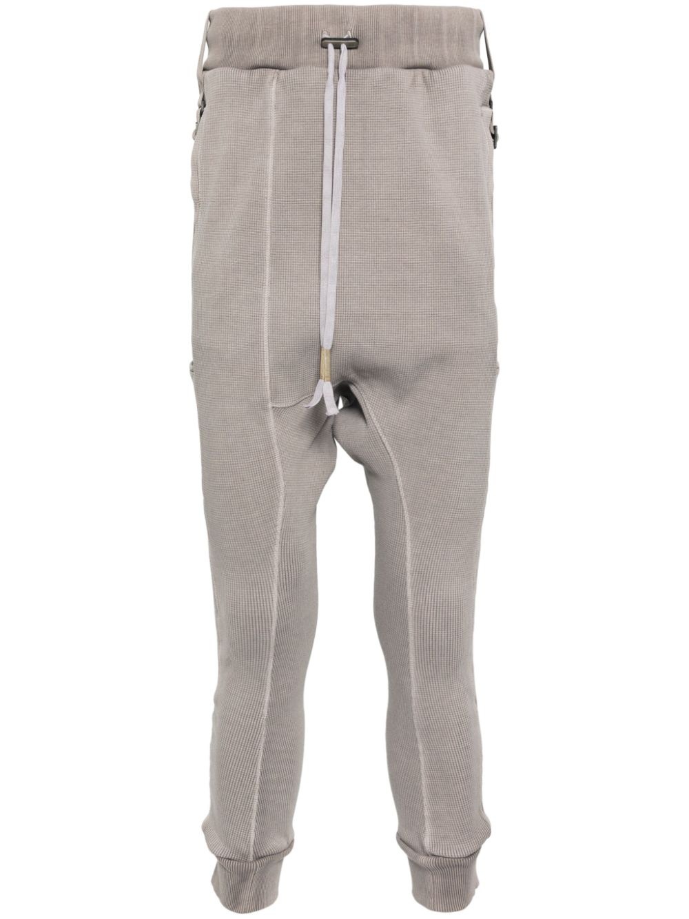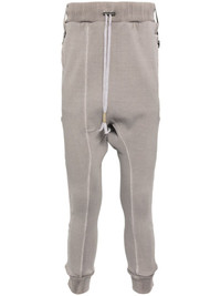 crop-crotch detail track pants Highlights - Light carbon - Cotton blend - Elasticated drawstring waistband - Two side inset pockets - Rear welt pocket - Elasticated ankles Imported Composition Cotton 90%, Elastane 10% SIZE & FIT Model measurements Height 6 ft 2 in(1.88 m) Bust/Chest 34.25 in(87 cm) Hips 34.64 in(88 cm) Waist 26.77 in(68 cm) FittingInformation Designed with a dropped crotch, offering a loose and relaxed fit The ribbed hem at the ankle offers a close, comfortable fit Made from a midweight stretch fabric, this piece offers elasticity and flexibility when worn