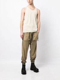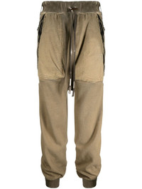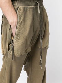 faded drop-crotch cotton track pants Highlights - Moss green - Cotton - Faded effect - Elasticated drawstring waistband - Drop crotch - Tapered leg - Two side zip-fastening pockets - Two rear zip-fastening pockets - Ribbed ankles Imported Composition Cotton 100% SIZE & FIT Model measurements Height 6 ft 2 in(1.89 m) Bust/Chest 37.4 in(95 cm) Hips 36.61 in(93 cm) Waist 28.34 in(72 cm) FittingInformation Designed with a dropped crotch, offering a loose and relaxed fit Adjust this piece’s waistband to your preference using the drawstring Made from a midweight non-stretch fabric, this piece offers minimal elasticity when worn This piece fits true to size – take your usual size Washing instructions Hand Wash