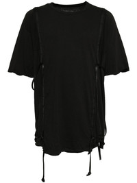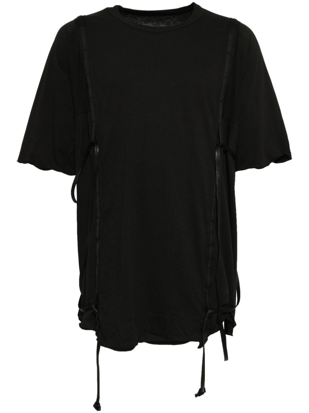 paneled T-shirt Highlights - Black - Cotton - Jersey texture - Panel detailing - Crew neck - Short sleeves - Lace-up detailing - Raw-cut edge - Straight hem Imported Composition Cotton 100% SIZE & FIT Model measurements Height 6 ft 2 in(1.87 m) Bust/Chest 33.07 in(84 cm) Hips 35.43 in(90 cm) Waist 26.77 in(68 cm) FittingInformation Designed for a relaxed fit, this piece allows for comfort and movement when worn Made from a midweight non-stretch fabric, this piece offers minimal elasticity when worn